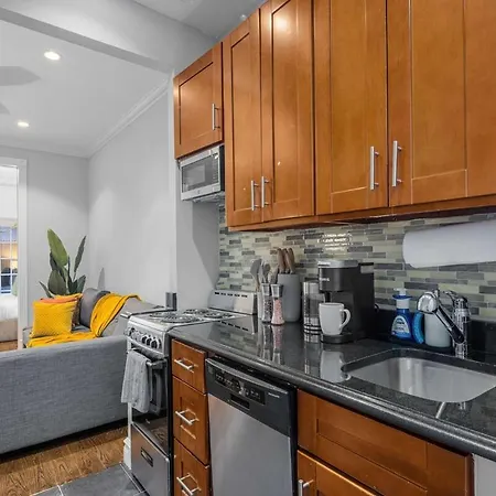 Manhattan Bridge is 1.2 miles from the apartment, while the Long-standing Macy's Department Store can be found 2.1 miles away. Guests will easily find the jewish restaurant "Katz's Delicatessen", which is steps away from this apartment. 2Br Lower East Side Family Haven Private Patio apartment is approximately a 10-minute drive from the cable-stayed Brooklyn Bridge.