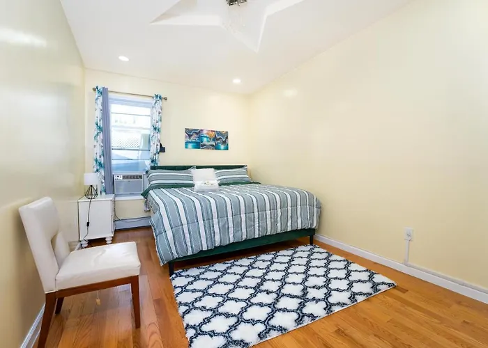 The 1000 ft² apartment lies in the Brooklyn district, a 25-minute walk from Breukelen Ballfields. Resorts World Casino New York City is 3 miles from the accommodation, and John F. Kennedy International airport is less than a 15-minute drive away.