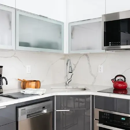 There is oven and a dishwasher in a full kitchen. The nearest bus stop to the accommodation is 2 Av/E 75 St, which is merely 800 feet away.