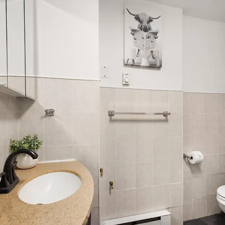 Beautifully Designed 3 Bdr In Dumbo Nyc Apartment features a bathroom with hair dryers.