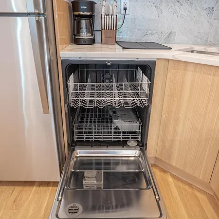 A kitchenette has oven and a dishwasher for preparing meals. You will be fairly close to the nearest bus stop - Rockaway Avenue & Fulton Street.