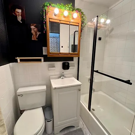 This apartment is equipped with a fully-fitted kitchen, including an electric kettle, a kitchenware, and glassware, to ensure your comfort. This property is 400 feet from 9th Avenue & West 46th Street bus stop.