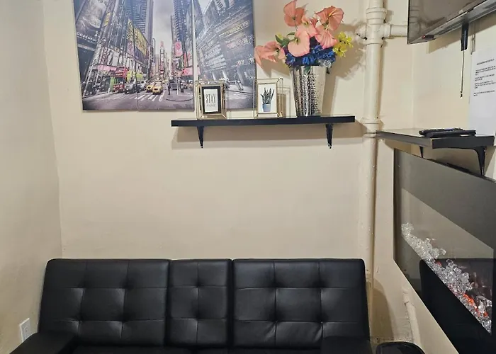 The property is equipped with coffee and tea making equipment, and a fridge, ensuring your comfort. This apartment is situated 0.5 miles from 116 Street / 8 Avenue subway station and 7 miles from Grand Central train station.