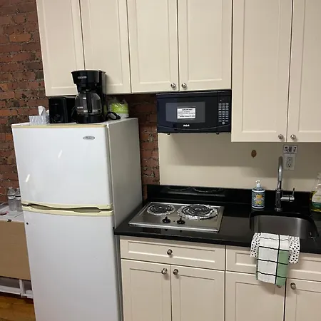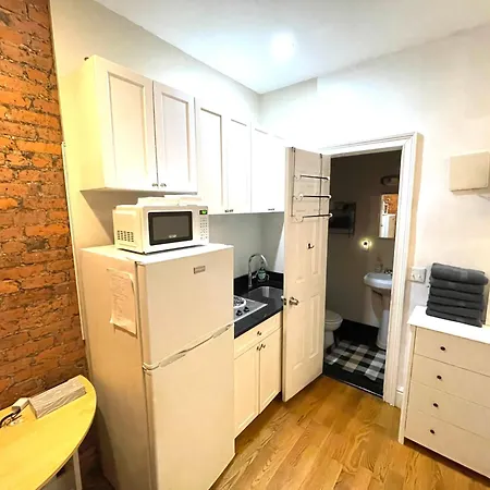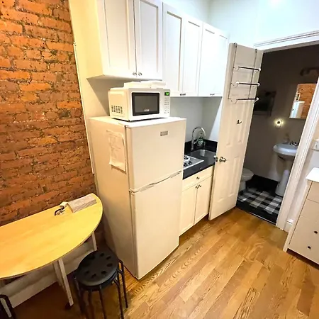 A kitchen comes with a fridge and a toaster. The apartment is merely 650 feet from 34th Street - Herald Square metro station and 10 miles from LaGuardia airport.