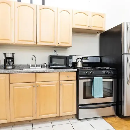The apartment comprises an equipped kitchen for self-catering. This accommodation is placed 700 feet from 116th Street IRT Lexington Avenue Line subway station.
