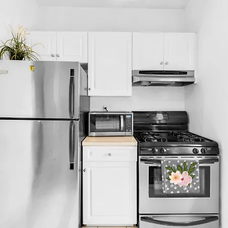 A full kitchen is provided at the apartment. The accommodation is near 14th Street subway station, which lies about 5 minutes' walk away.