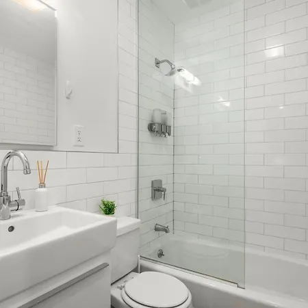 To ensure your comfort, a separate toilet and a shower are provided at Stylish 2Br Apartment In The Heart Of East Village. Furthermore, a hairdryer, bath sheets, and towels is available.