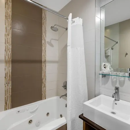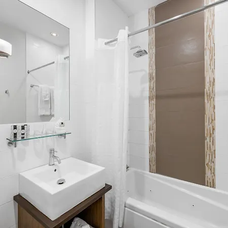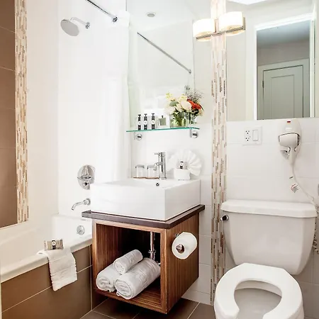 The rooms at the Aura Hotel Brooklyn New York include air conditioning, as well as media facilities like a flat-screen TV with satellite channels. Appointed with soundproof windows, the rooms also come with a mini fridge bar and coffee/tea making machines. Offering a hairdryer and bath sheets, the bathrooms also feature a separate toilet and a shower.