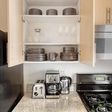 Among the self-catering amenities provided is a kitchen with coffee and tea making facilities, an oven, and kitchenware. LaGuardia airport is at a 22-minute driving distance, and Broadway & Cortlandt Street bus stop is fairly close to Fidi 2Br W Elevator Gym Doorman Nr Wall St Nyc-661 apartment.