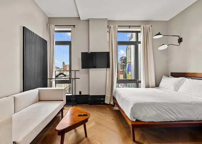 Freeman 701 By Rove Studio With Shared Amenities New York villa offers swift access to various city sites, such as the three-block-long Sarah Roosevelt Park, situated a mere 5 minutes' walk away.