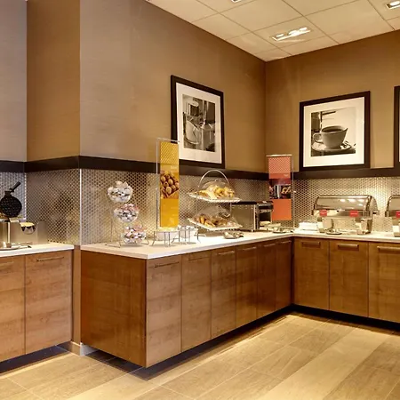 Hampton Inn Brooklyn Downtown features a free buffet breakfast in the reception area. Experience American dishes at the American-style House restaurant onsite. You can also relax at the lobby bar and sample light along with light snacks.