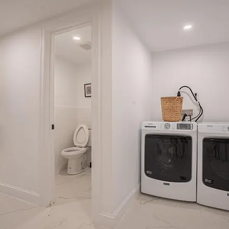 At Modern 2Br Plus Basement Brooklyn Stay And Backyard apartment, guests will enjoy the convenience of a hairdryer, bath sheets, and towels in the bathroom. Moreover, there is a walk-in shower, a separate toilet, and a washing machine as well.