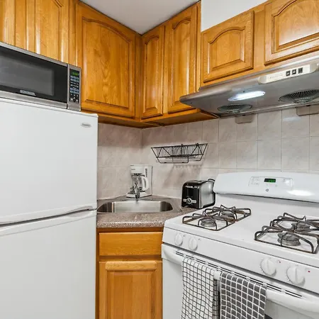 This apartment is equipped with a fully furnished kitchen, including an electric kettle, a fridge, and a kitchenware, to ensure your comfort. This accommodation is also 250 feet from Allen Street & Delancey Street bus stop and just moments from Essex Street / Delancey Street subway station.