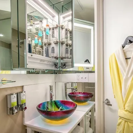 The smoke-free Staypineapple, An Artful Hotel, Midtown New York features 104 rooms and lies a 25-minute walk from Rockefeller Center. This hotel offers Wi-Fi in public areas.