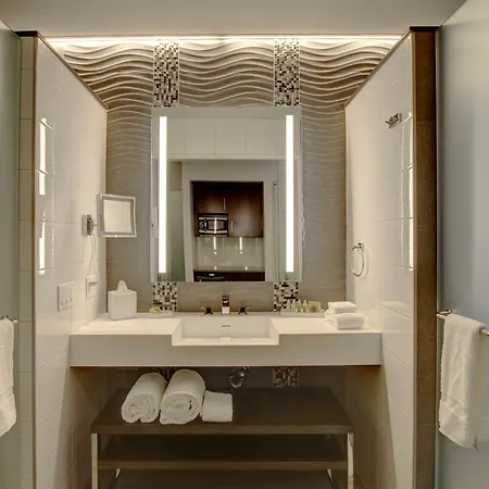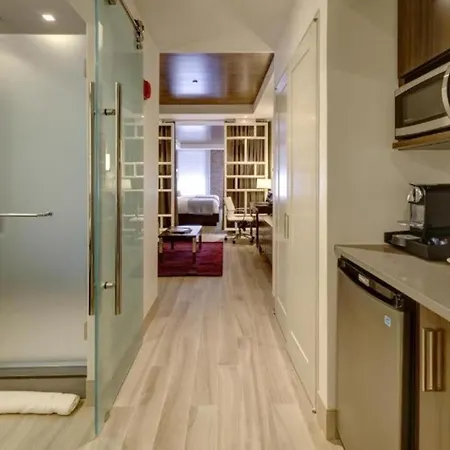Some rooms at the Brooklyn New York are fitted with a trouser press, an iron and ironing board, and air conditioning, and such self-catering options as coffee/tea making equipment. Providing a sink, the bathrooms are also equipped with shower caps and bath sheets.