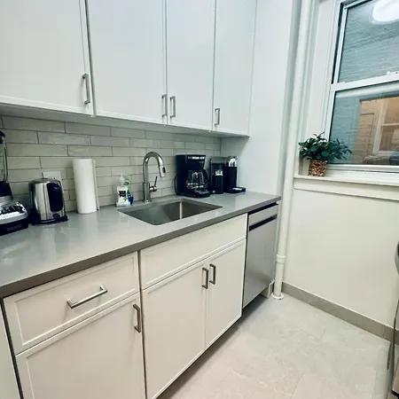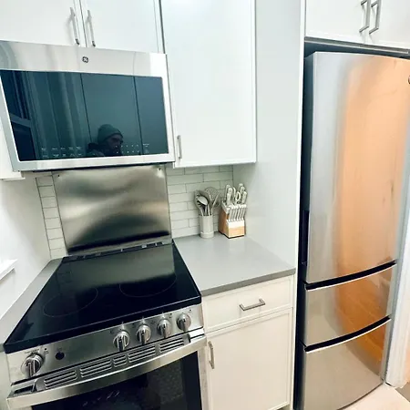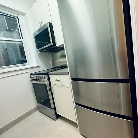 Upper East Side 2 Bedrooms Gem apartment is equipped with an electric kettle, a fridge, and a kitchenware, ensuring your comfort. 3rd Avenue & East 72nd Street bus stop lies 100 feet away.